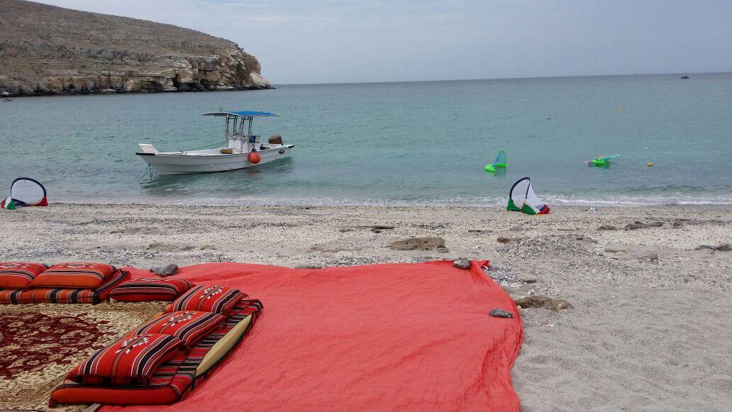 Overnight at remote beach in Musandam Fjords in the comfortable camp with BBQ Dinner served with live cooking at the camp, Bon fire party in the night with beach volley ball, Kayak etc, and next day dhow cruise with lunch.