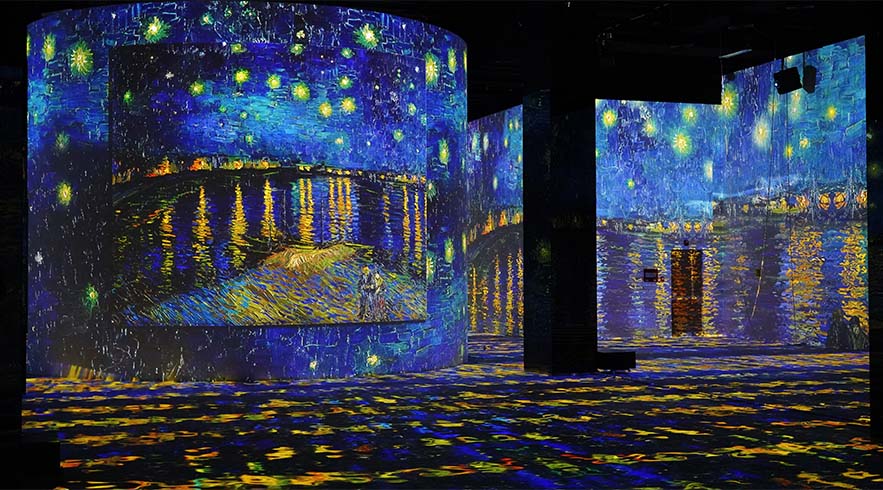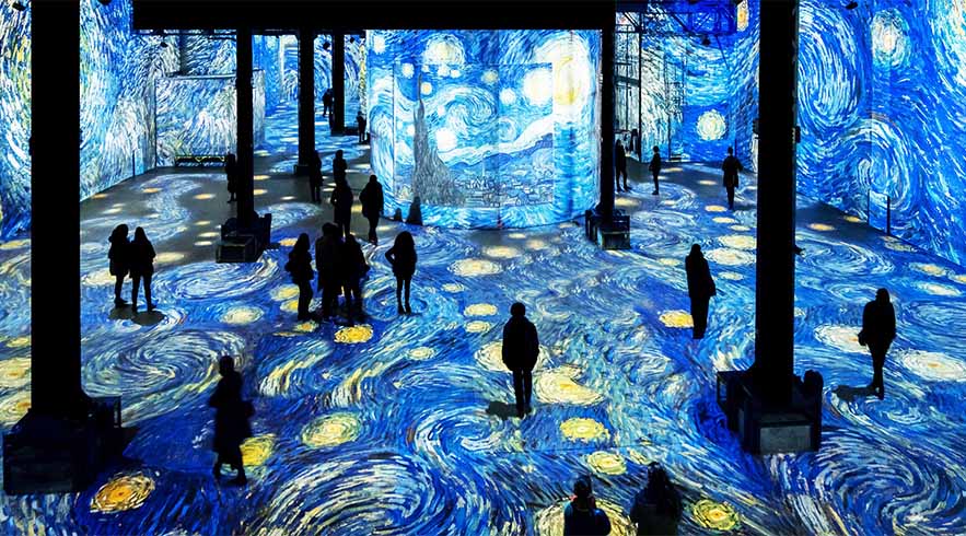 The major draw is the exhibition themed around Vincent Van Gogh’s artworks. This allows you to take in some of his famous masterpieces such as Potato Eaters, Sunflowers etc in their digital format. The second exhibition is Dreamed Japan where you will enter a fantastical world with the animations of lanterns, seascapes and samurai warriors – all depicting the world of Japan in the 19th century. As for its third exhibition – Verse, it journeys you to the cosmos and infinity through the stunning creations by Thomas Vanz.