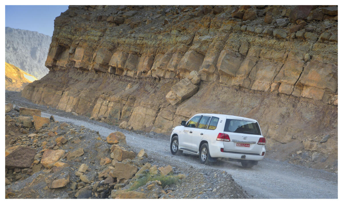During your journey to Jebel Harim, you will be able to enjoy incredible vistas, including terraced mountain villages, lush Acacia forests and wadis (dry river beds). Following a drive of a little over an hour, a stop will be made at a Bedouin village located at an elevation of 3,000 feet. The village of Sayah, surrounded by palm groves, is one of the most picturesque villages on the Musandam Peninsula. After a stop for photographs and to enjoy this idyllic setting, continue with your drive to Jebel Harim. There will be time to admire the grand panorama from the mountain’s summit.