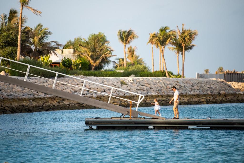 The hotel is in the UAE’s adventure emirate Ras al Khaimah, a mountainous coastal region with the world’s longest zip line, a 45-minute drive from Dubai airport. Guests are transported from the welcome lounge by private boat, giving a sense of being on an exotic island, though the resort can also be reached by golf buggy.
