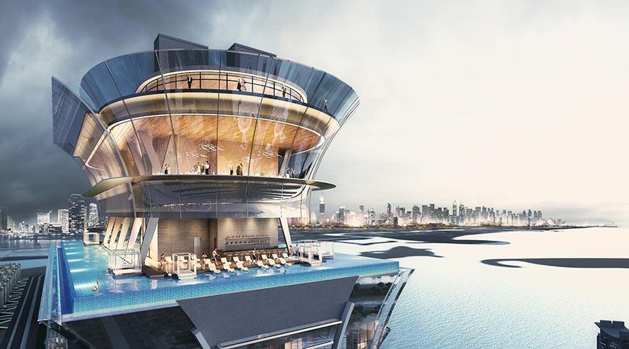 Suspended 200 metres in the air, AURA is the world’s highest 360-degree infinity pool offering incredible views of the iconic Dubai skyline, Palm Jumeirah and the glistening horizon of the Arabian Gulf.