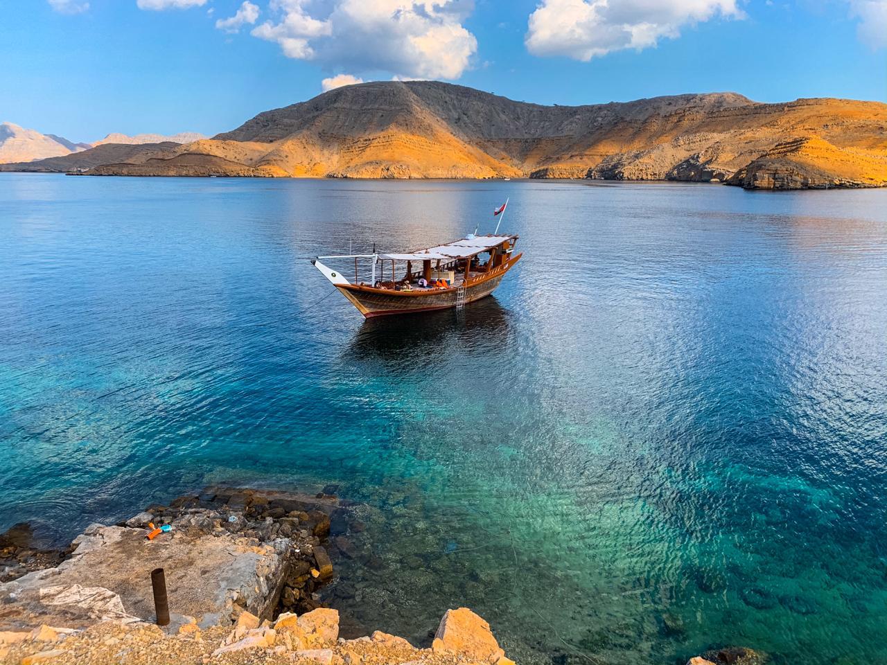 - On this day you can soak up the sea and the sun on a Dhow Cruise. A traditional wooden boat will take you to the magnificent bays near Khasab where you will have the chance to see dolphins playing along side the boat. Finish the day off by jumping into the water and witnessing Oman’s exceptional marine creatures. Watch the setting sun from the boat.