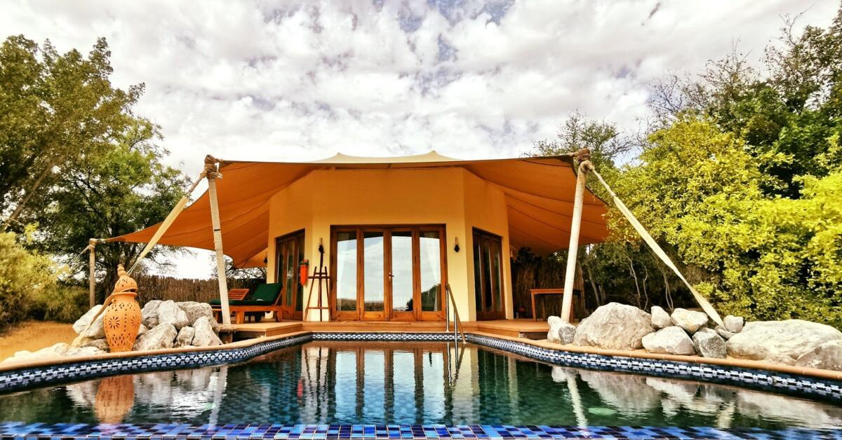 A spacious lounge and two luxurious bedrooms, each with a custom-made super king-size bed and handcrafted furnishings, offer a relaxing experience in total comfort.   The wide terrace with sun loungers, private deck dining area and sizeable pool present expansive views onto the open desert. Indigenous wildlife, such as gazelle or Arabian oryx, will frequently be seen grazing near the Suites.