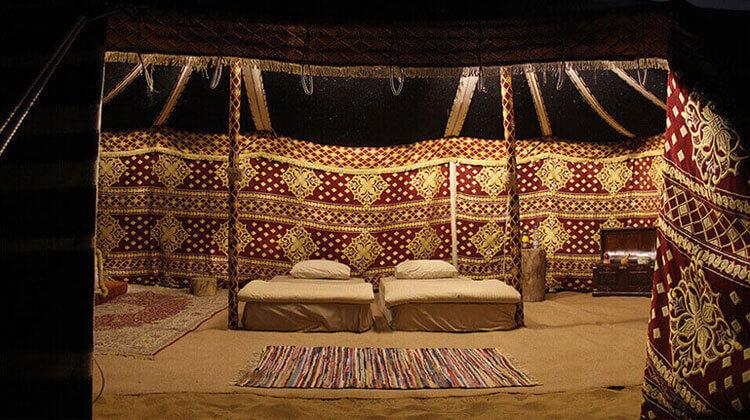 • Accommodation in Bedouin-style tents (beds, pillows and blankets)